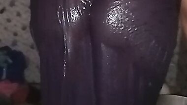 "Desi village girl Priya Bhabhi bathing in bathroom while husband makes a video"