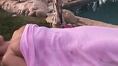 "Horny slut slides on a big hard pole with her ass"