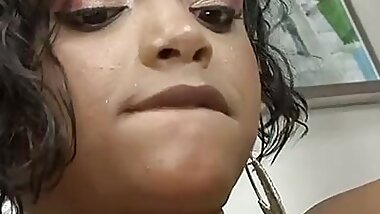 "Guy rams his black dick in busty slut's tight pussy in her room"