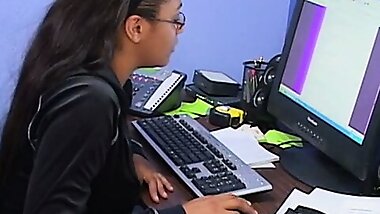 "Cute ebony teen Tiffany Monroe gets a very special personal training lesson"