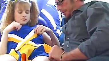 "Cute little brunette with shaved pussy loves getting assfucked on school bus"