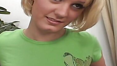 "Blonde Teen Kelly Gives a Point of View Handjob"