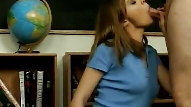 "Brunette hottie with great tits fucks and sucks her teacher in the classroom"
