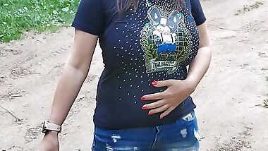 "Young chubby girl with nice curves sucks and fucks boyfriend in the forest"