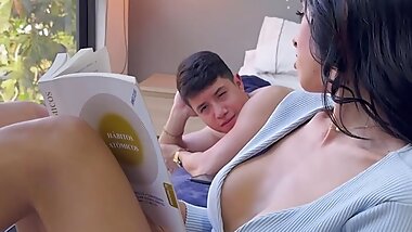 " WHY IS THE BROWN STEP-SISTER LYING ON THE STEP-BROTHER'S LEGS? - real homemade sex my latina brunette stepsister"