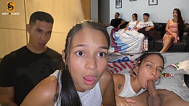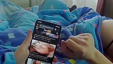 "Step Mom caught Step Son jerking off and helps to cum quick on her pussy while her Husband is home"