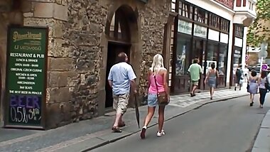 "Stunning German teen plays with older dude"