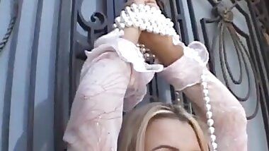 "Melody shy blonde teen grips her titties"