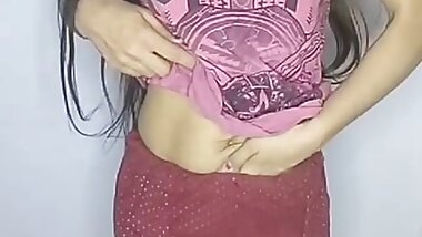 "Gentle cute charming homemade striptease in pink and masturbation and violent orgasm close up"