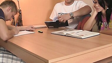 "Adorable Teens Cornelia Quinn and Karry Slot Take Turns Riding Dick"