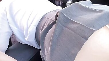"Big Ass Redhead Secretary Gives Road Head in Glasses"