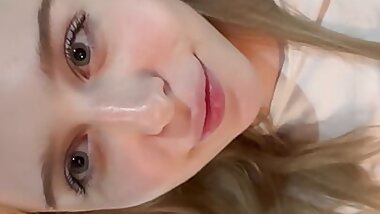 "After a blowjob and fuck, dude shoots load across hot brunette teen's face"