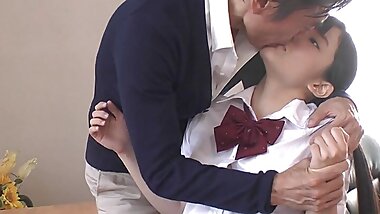 "Asian Virgin Schoolgirl seduce her Big White Cock Teacher to Defloration Sex"