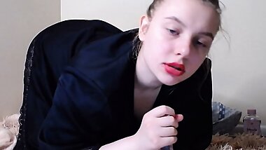 "Stepmom licking cock and get semen swallow"